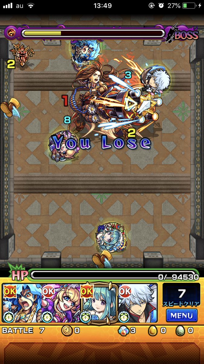 最大HP減らしてくる攻撃もありましたが銀さんの底力で何とかなりました
