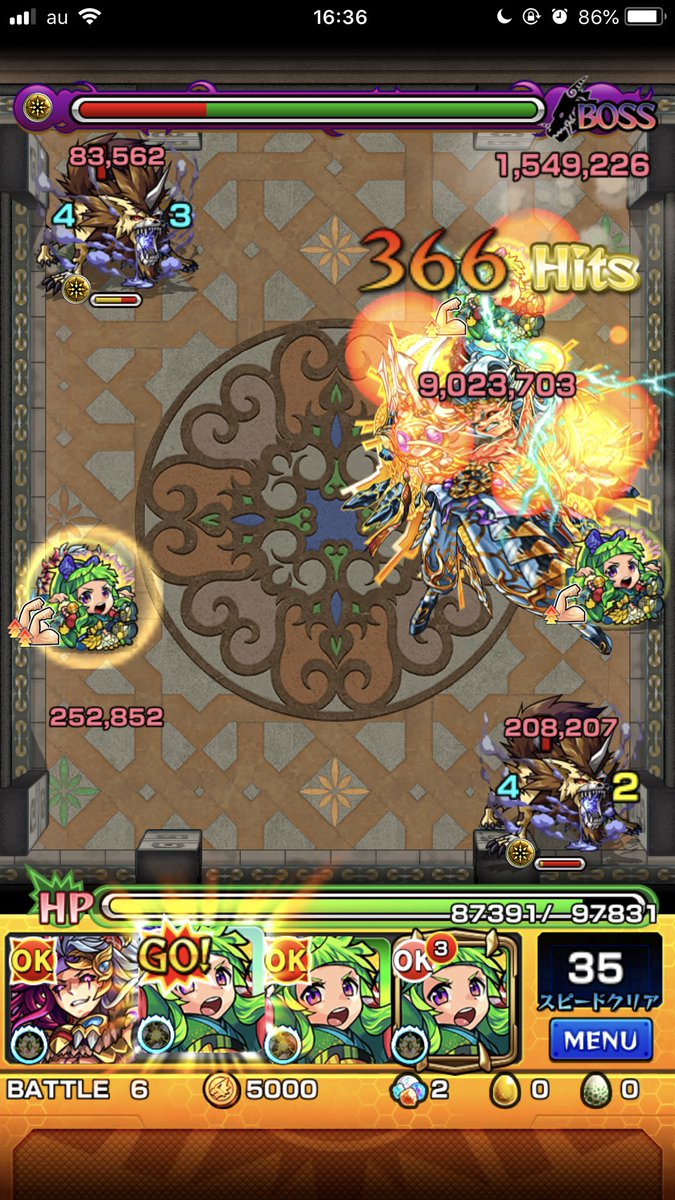 適正の幅は広い感じ。地雷が8ターンなので今回は飛行で無視する編成に。クフで地雷利用するのもいいけど雑魚処理がキツイかな。蒲公英のSSはボス2で。 #モンスト #運2 pic.twitter.com/7FwuY9KHAg
