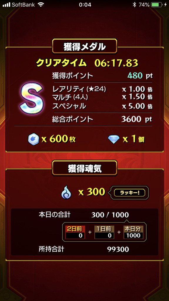 運枠2・Sランク周回。