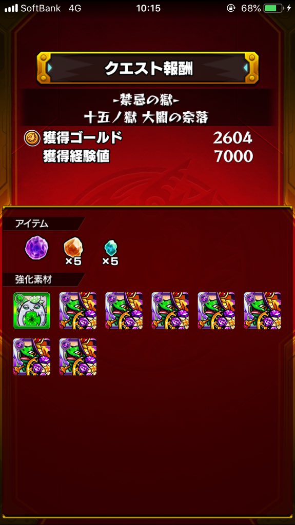 十五ノ獄のノーコン報酬が奈落1体確定で、刹那マラソン中に奈落運極が副産物として作れるとかなら多少はモチベ上がるんだけどな…。