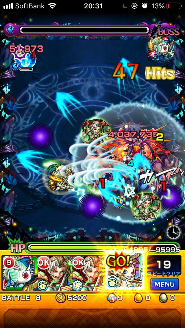 二回目ラスゲ前でセポネの大号令でクリティカルが出て半分からラスゲ!