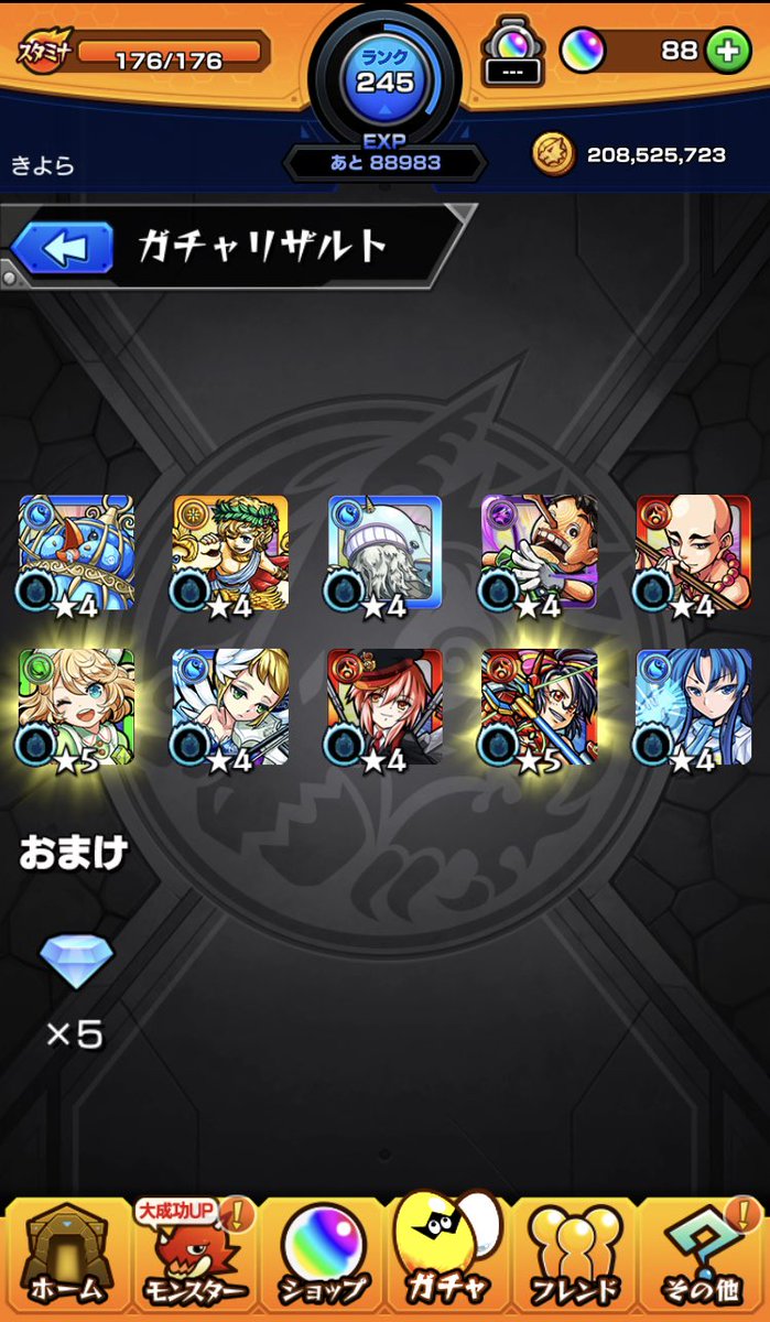 今の激獣で持ってるのがワルプルだけで、妲己弁財小町欲しくってブッパしたんだ・・・確定からミロクとか・・・アルカディア終わってんだよ!