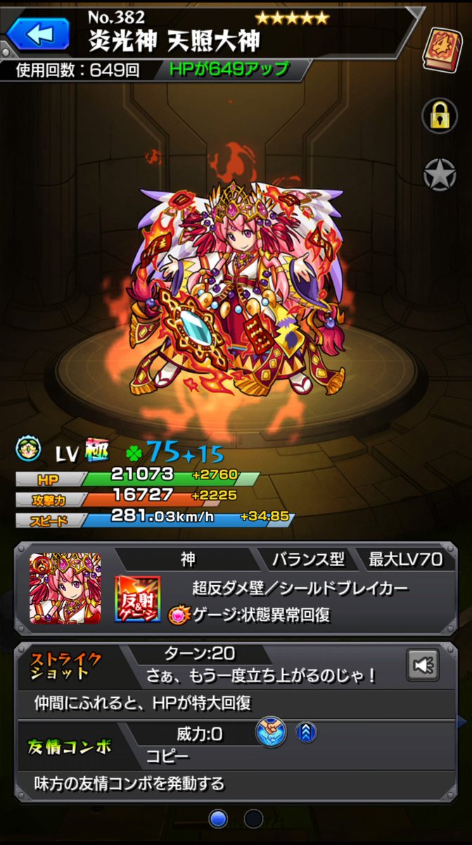 上方修正されたアマテラスちゃんが、めちゃくちゃ強い(⁎˃ᴗ˂⁎)♡モンストがまだラックが極とか作りづらい時期…始めた当初からお世話になってたなー!⸜ (* ॑꒳ ॑* )⸝レチリより先に🍀90になってたしww