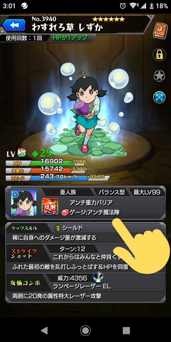 最近はキャラが強くなったので、突破するのに苦労はしませんが、しずかちゃん入れたらかなり安定しましたよ(°д°)