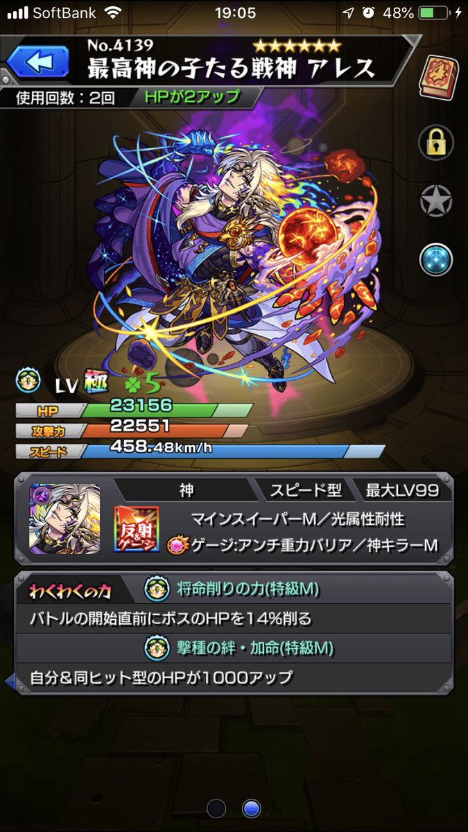 覇者39階でアレス使ってみましたが、このボスへの特攻力は魅力的ですね😆❗️ハマるクエストが出て来たら一強になるまでありえそう💡