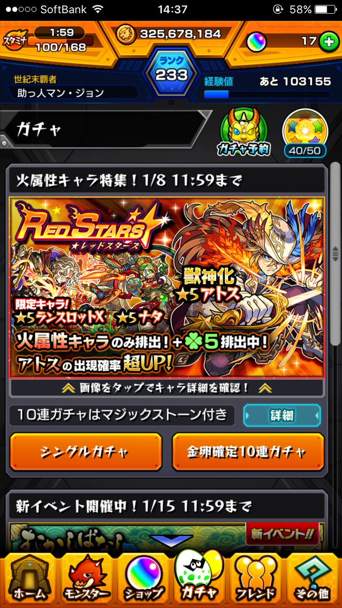 601: モンスト@ニュース速報 2018/01/06(土) 12:34:44.66 ID:2ZmU6hera.net