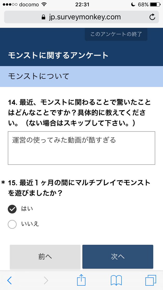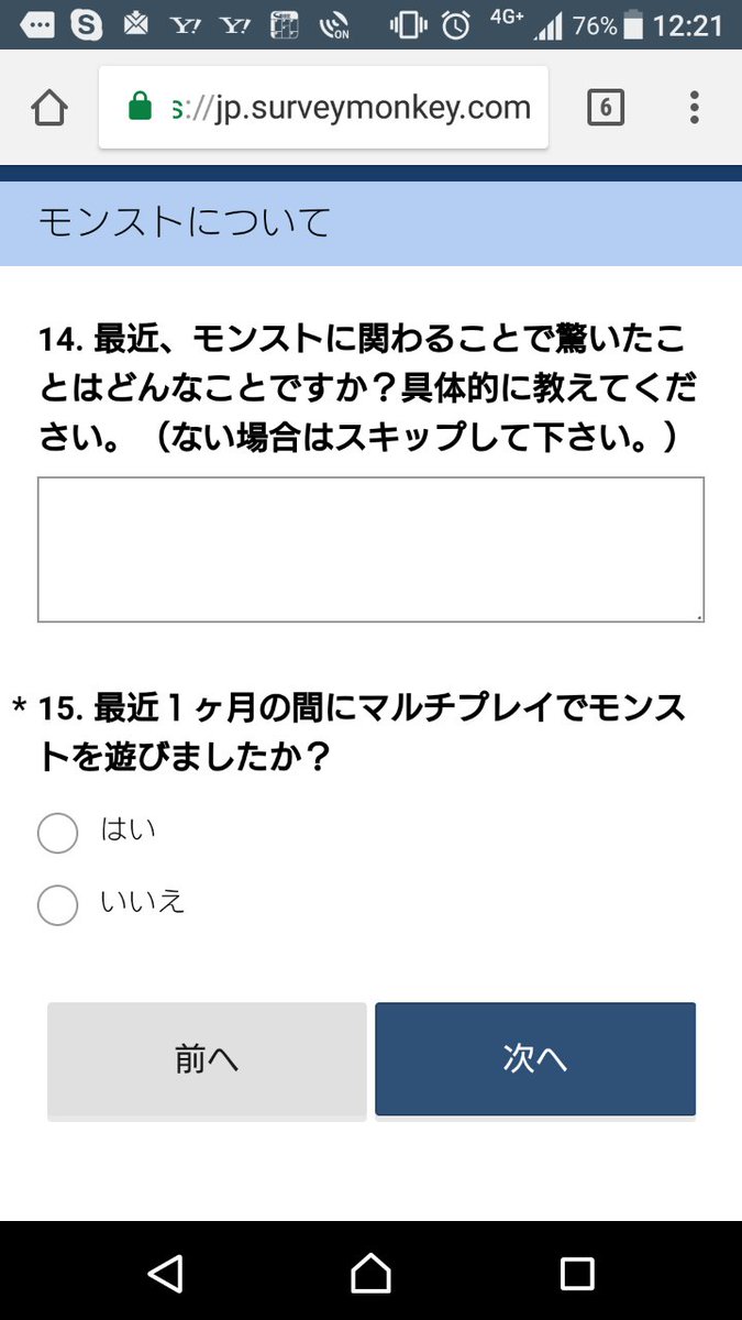 モンストのアンケートはいつも開いて閉じてます(*_*)