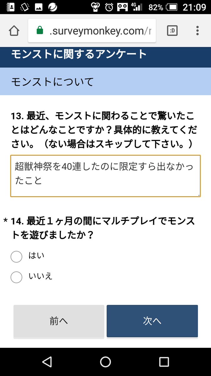モンストのアンケートで「モンストをやってて驚いた事をあれば書いて下さい」って所に「獣神祭で10連ガチャをやっても星5キャラが一体も出ない」って書いてやったぜ