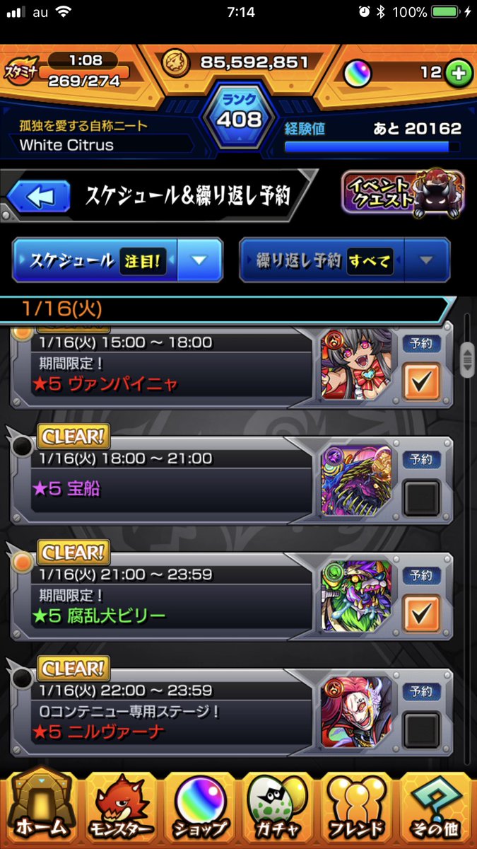 夜勤明けの人とかに気を使ってのスケジュールなんだろうがカナン時間悪すぎだろ~、ほとんどできないや・・・
