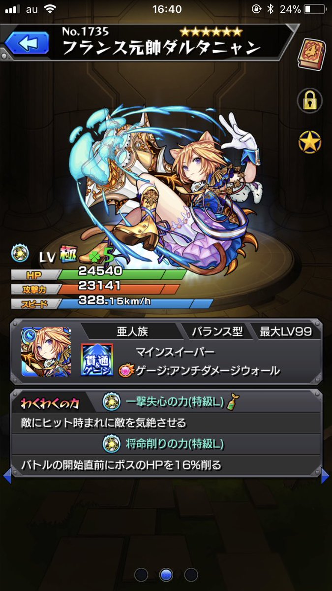 36階がまた簡単になるのは別にいいんだけど(というか、ゲージ無くなるのは事故が減るから助かる)、ダルタニャンは獣神化しなくても強いし、今じゃないでしょ……