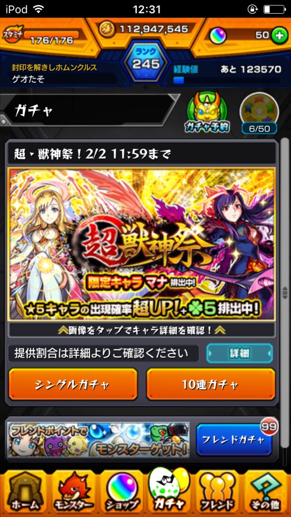 【速報】激獣神祭復刻でMV狙いの嵐キタ━━━(゚∀゚)━━━!! みんなは引く?