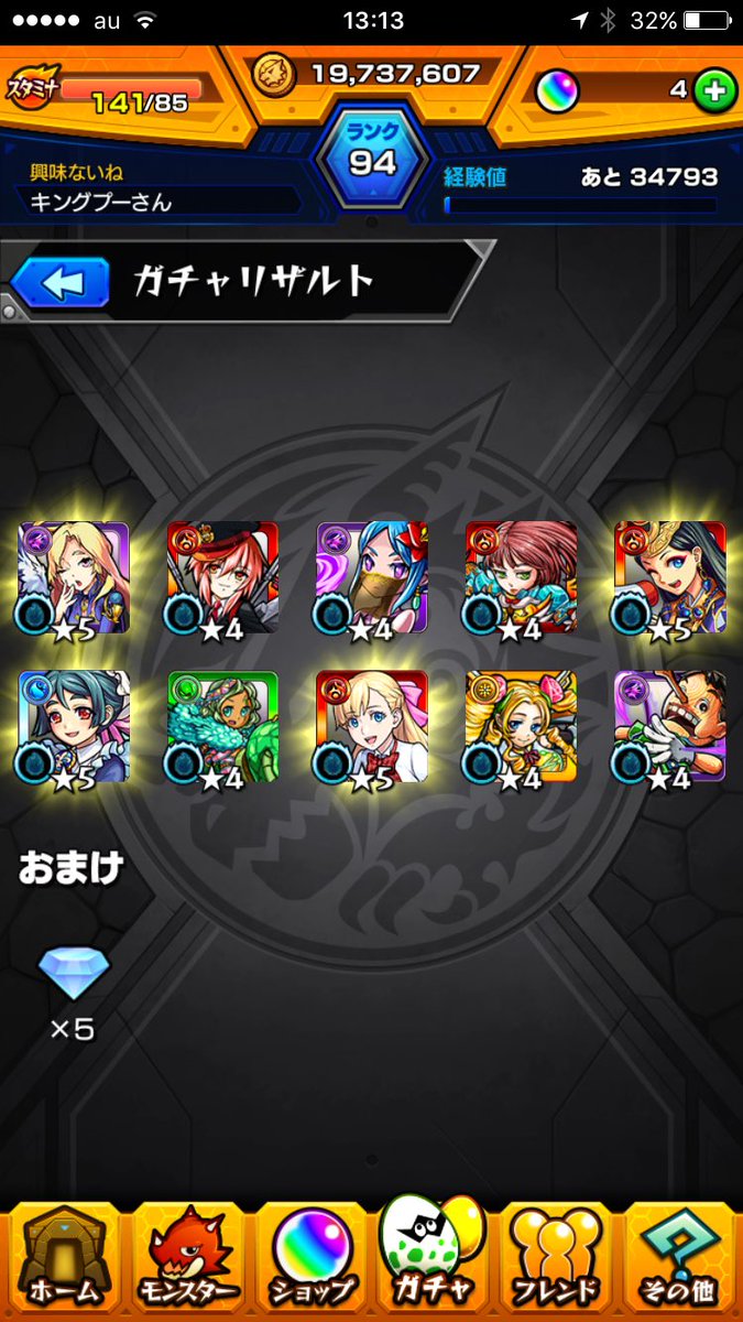 この前の激獣神祭で大爆死したのだが、今回はかなりの神引きだ…