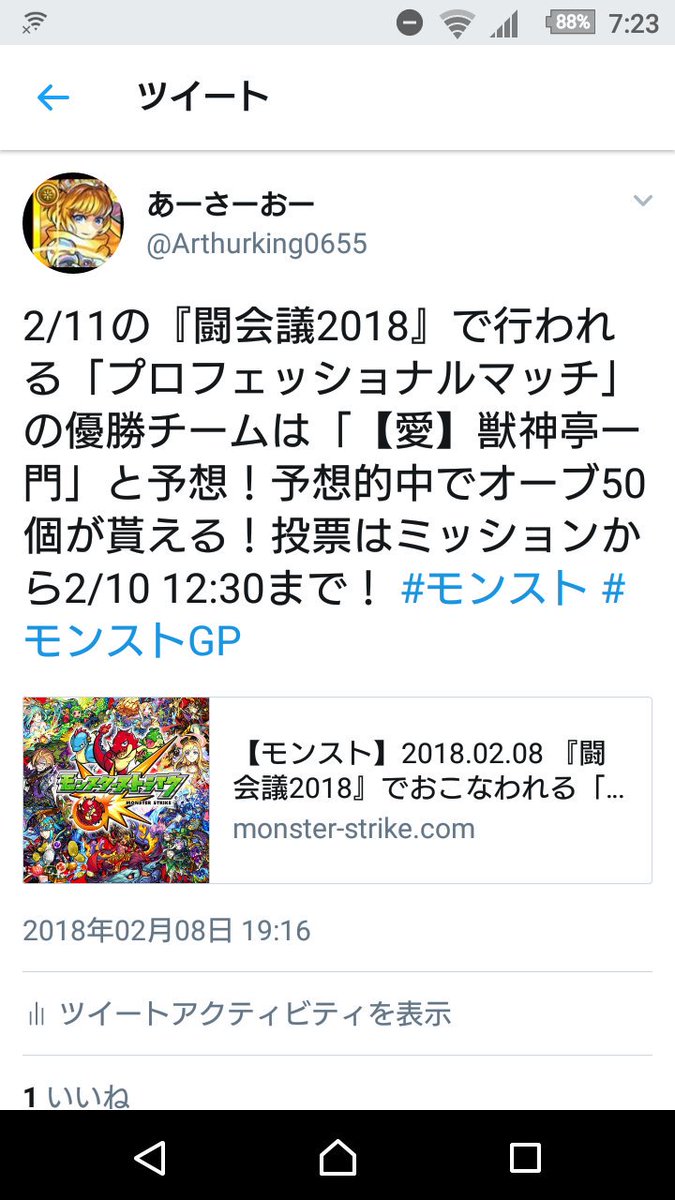 — Children@゚ω゚)Ψ モンスト(@kazuki25019109)Sun Feb 11 15:36:34 +0000 2018