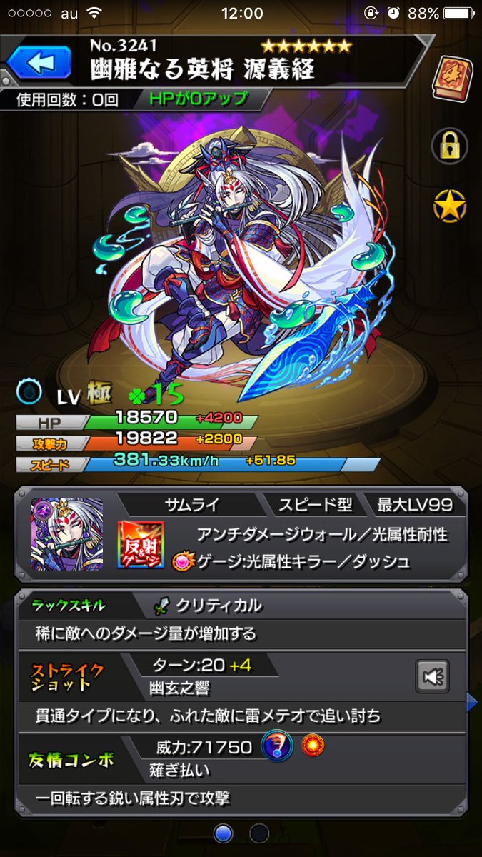 獣神化『源義経』ステータス