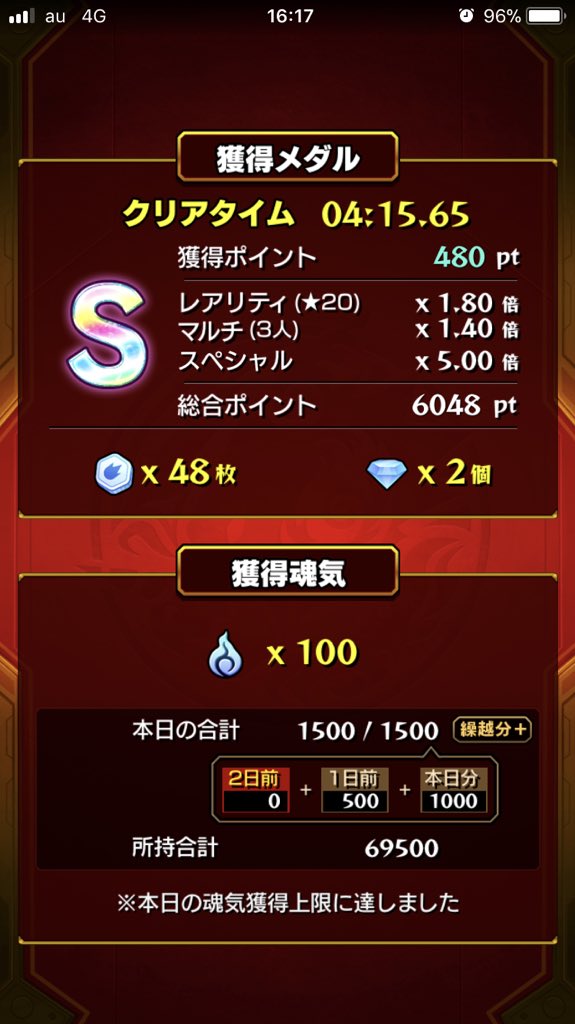 Sランクとスコア両方厳選して特Lにしといて良かった(*´∀`)-3