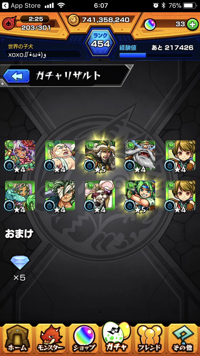 グリファン、ザドキエル狙いで80連回して☆5キャラ10体。バッハ高杉晋作の強キャラにアポックスチンハンロビンフッドデドラビの限定キャラ。ラストで、確定きたあああぁ!思ったら再びのデドラビでした…