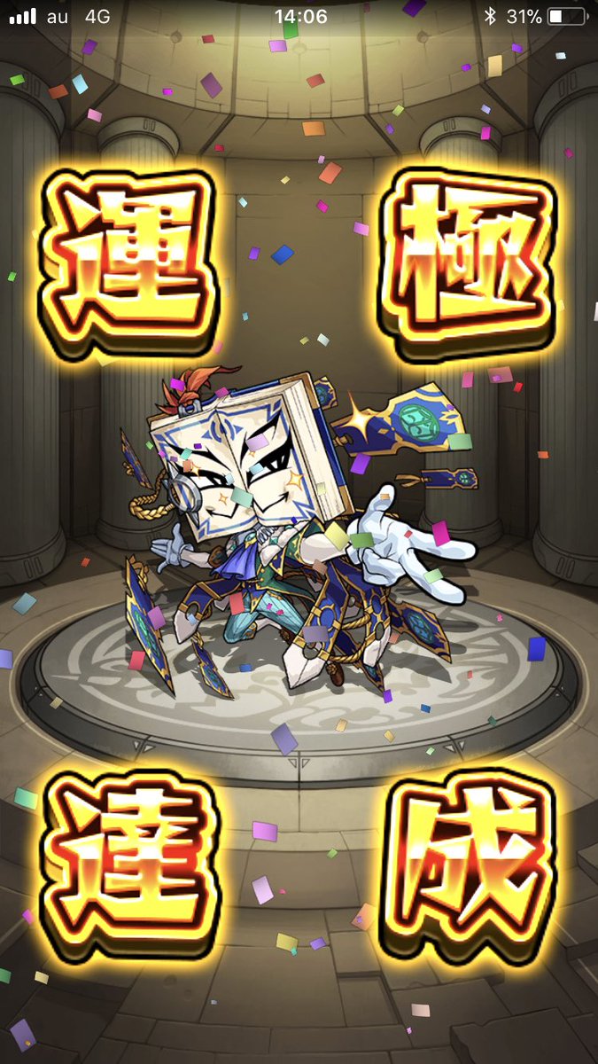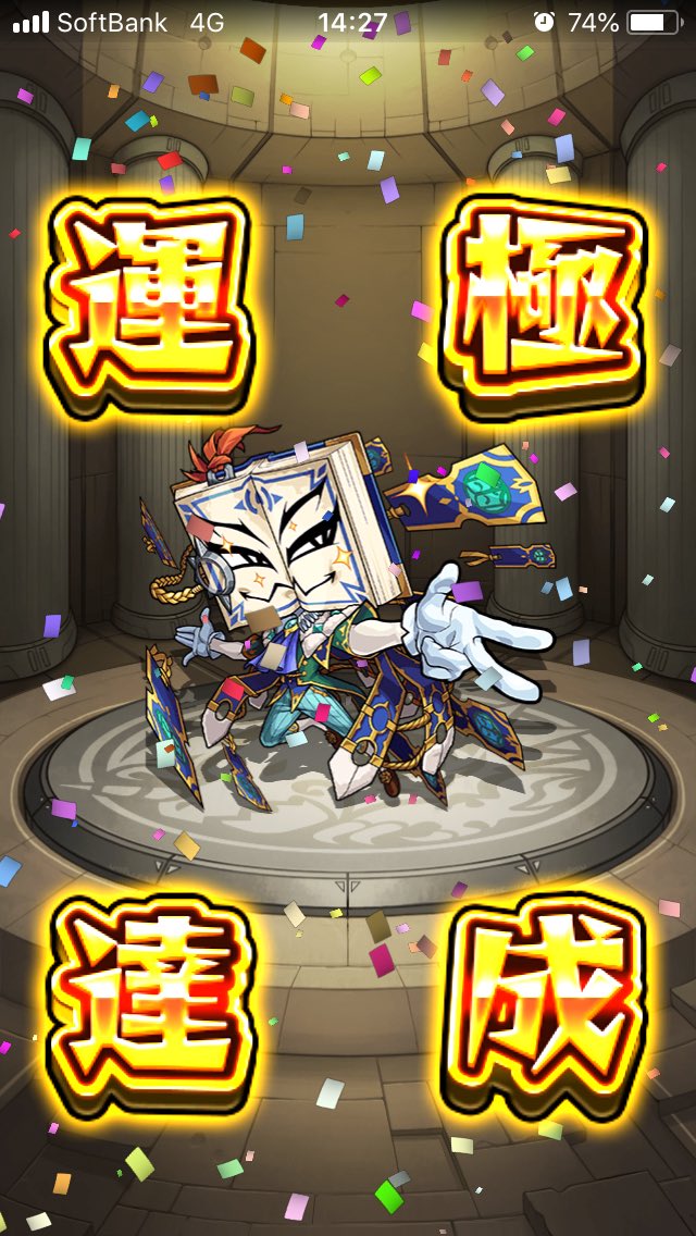114体目ダンタリオン。周回はラック30レオリオとジタン3。運枠いないと時間かかるわ。最終降臨で滑り込み運極👍