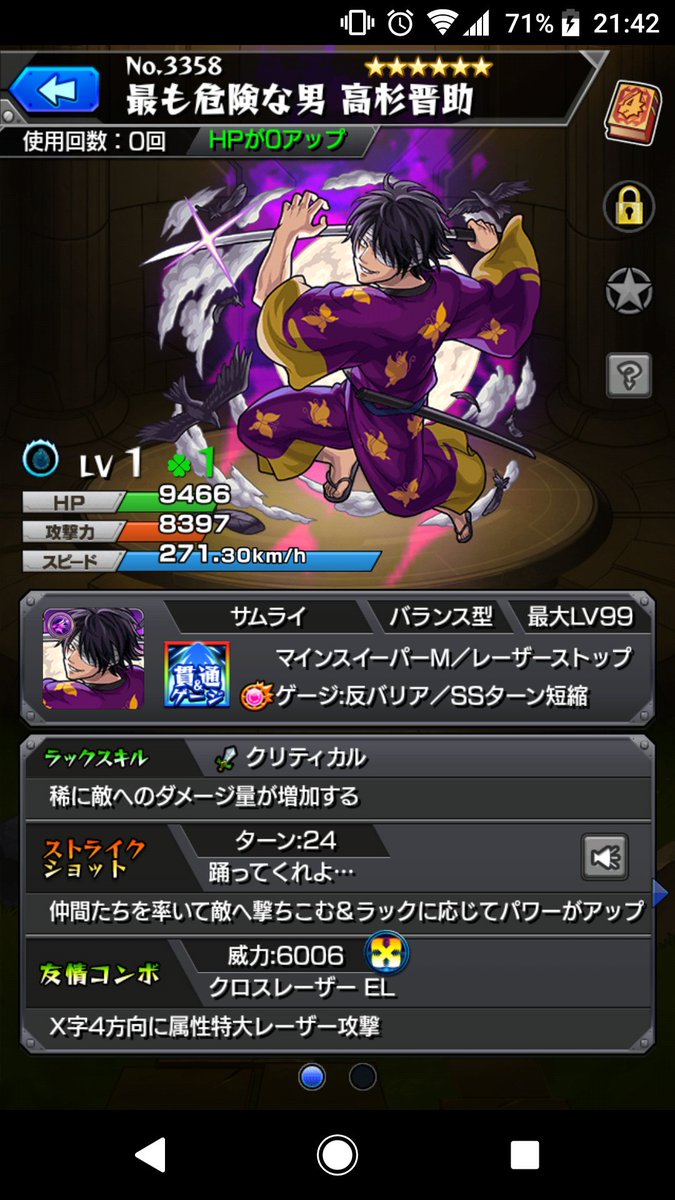 | ボス(ドロップ) | (★5)高杉晋助 |