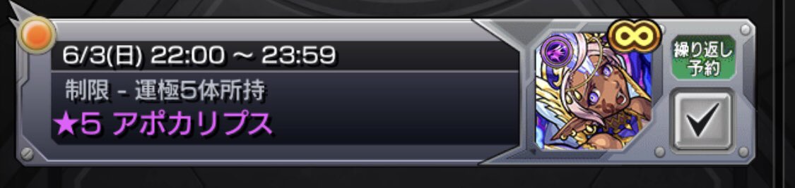 よくやった運営よ。日曜日にアポカリプスは有難いよね〜。日曜なら周回出来るわ