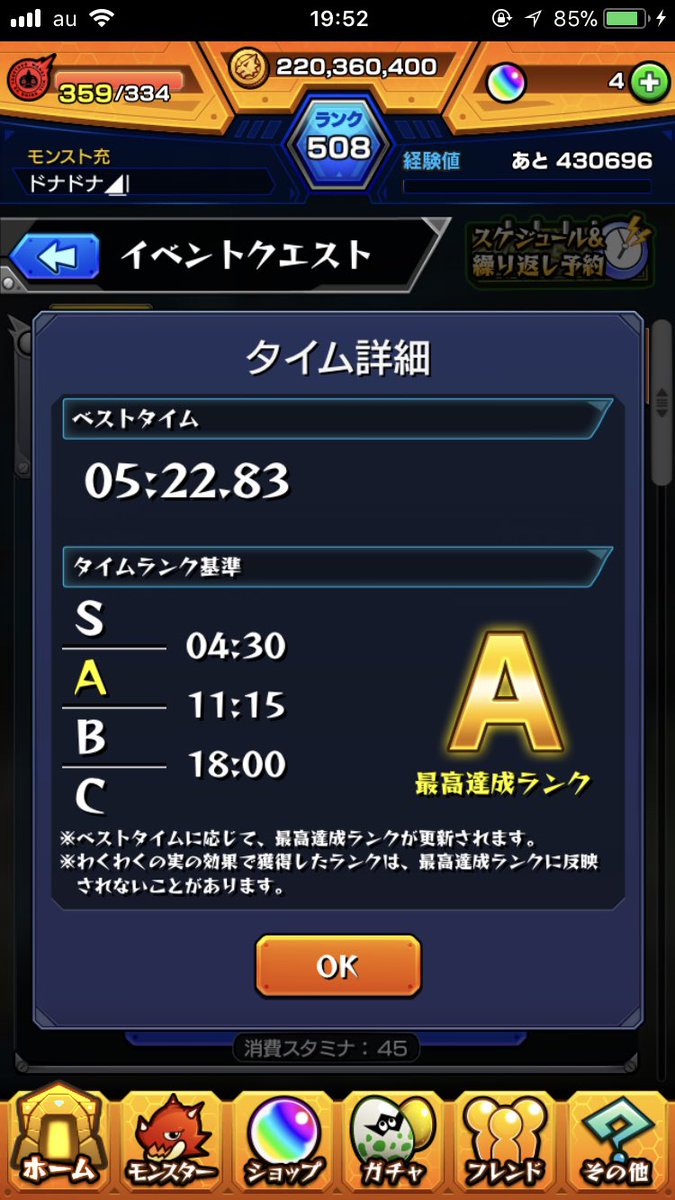 リザルトではSランク取ったけどクエストのタイムから見たらAになってたぞ