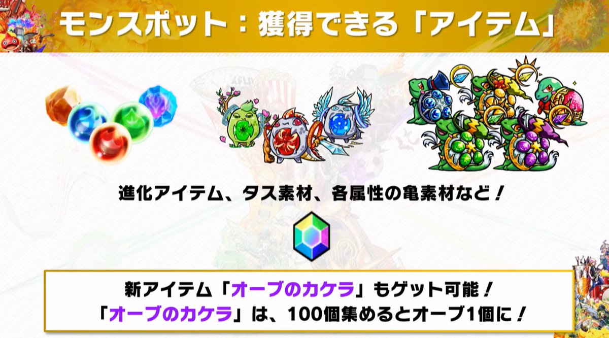 モンスポットではオーブのかけらや進化素材なども入手可能