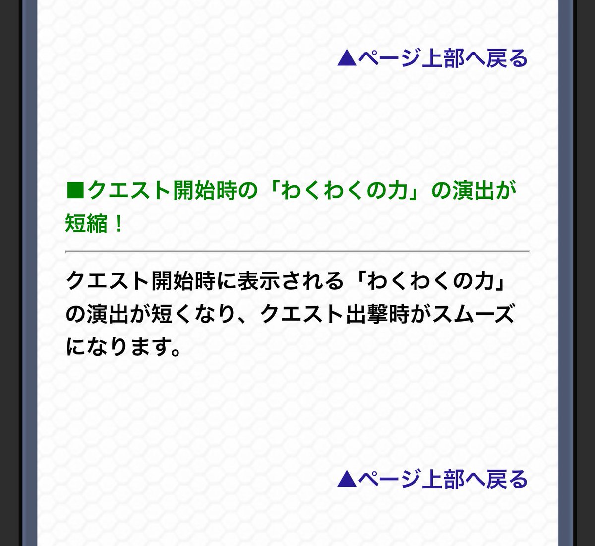 クエスト開始時のわくわくの演出短縮は地味に嬉しい