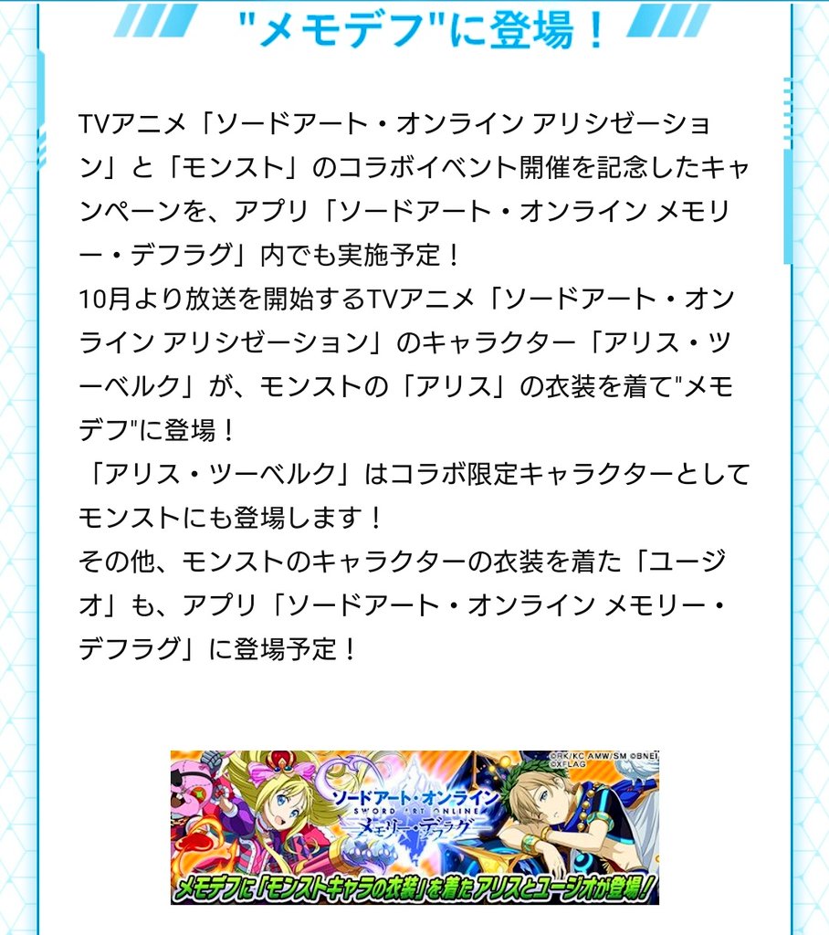 モンストのSAOコラボにアリスがいるならアリシゼーション編も入ってるってことよな?