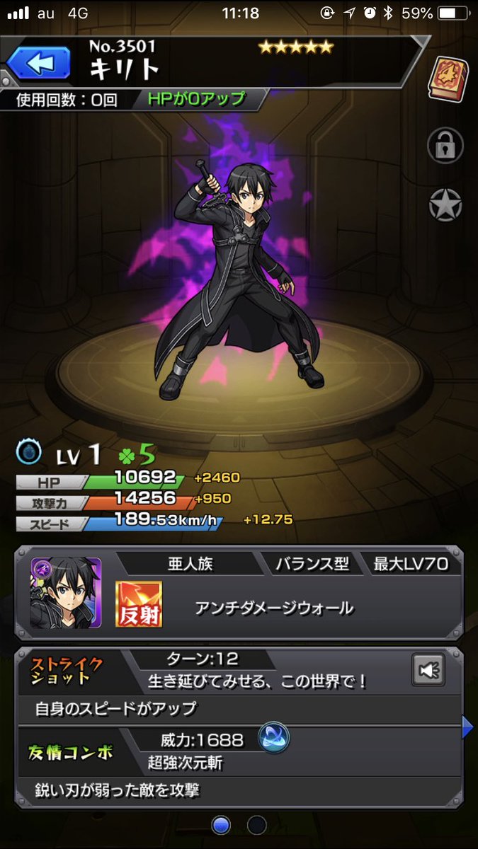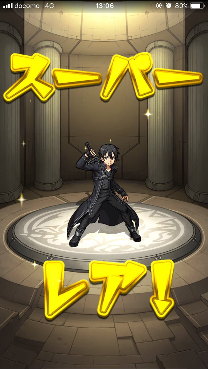 今日はキリトが超アップで(1.8%)ありがたいことに単発(演出なし)で当たりました!