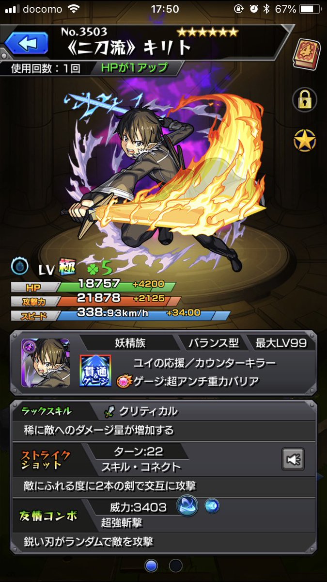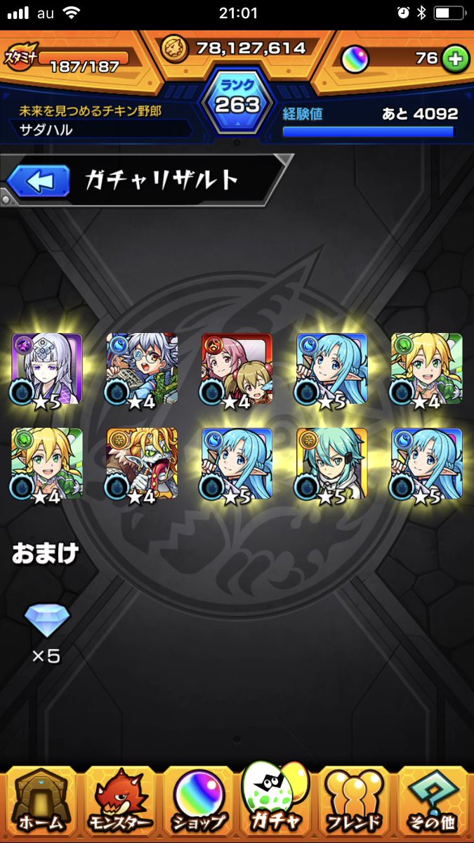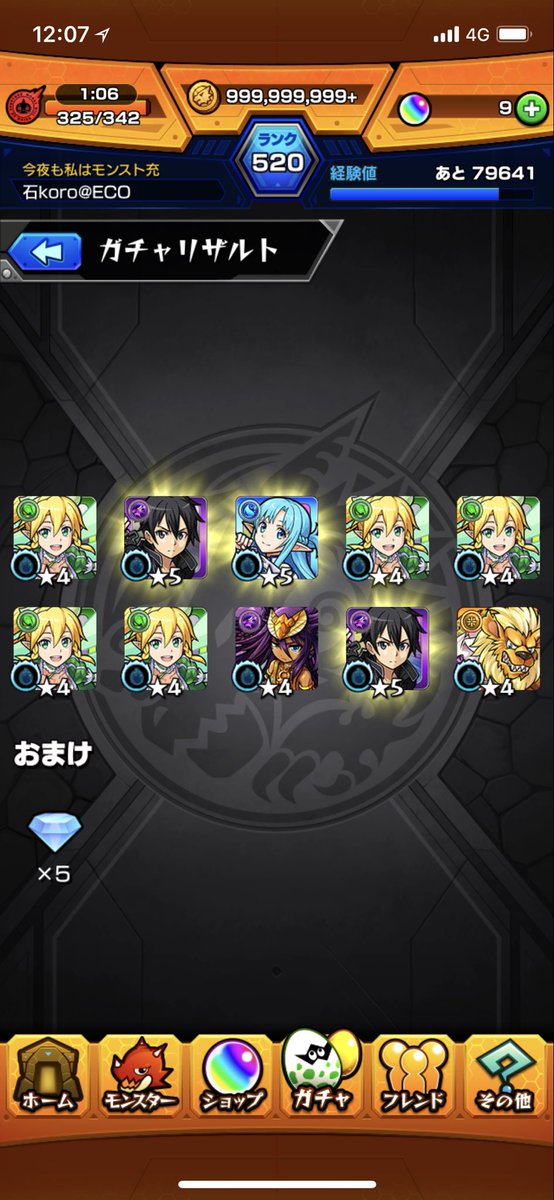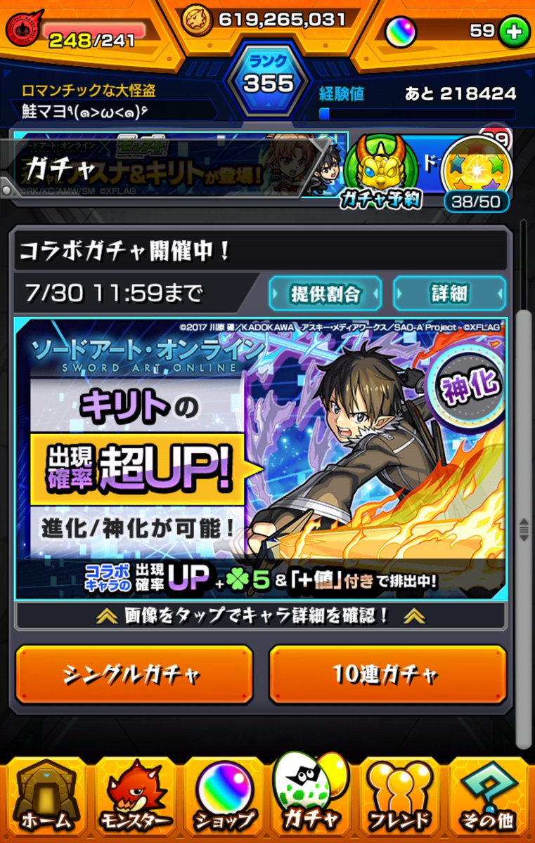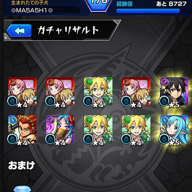 ソードアートオンラインコラボガチャ10連した結果↓↓↓