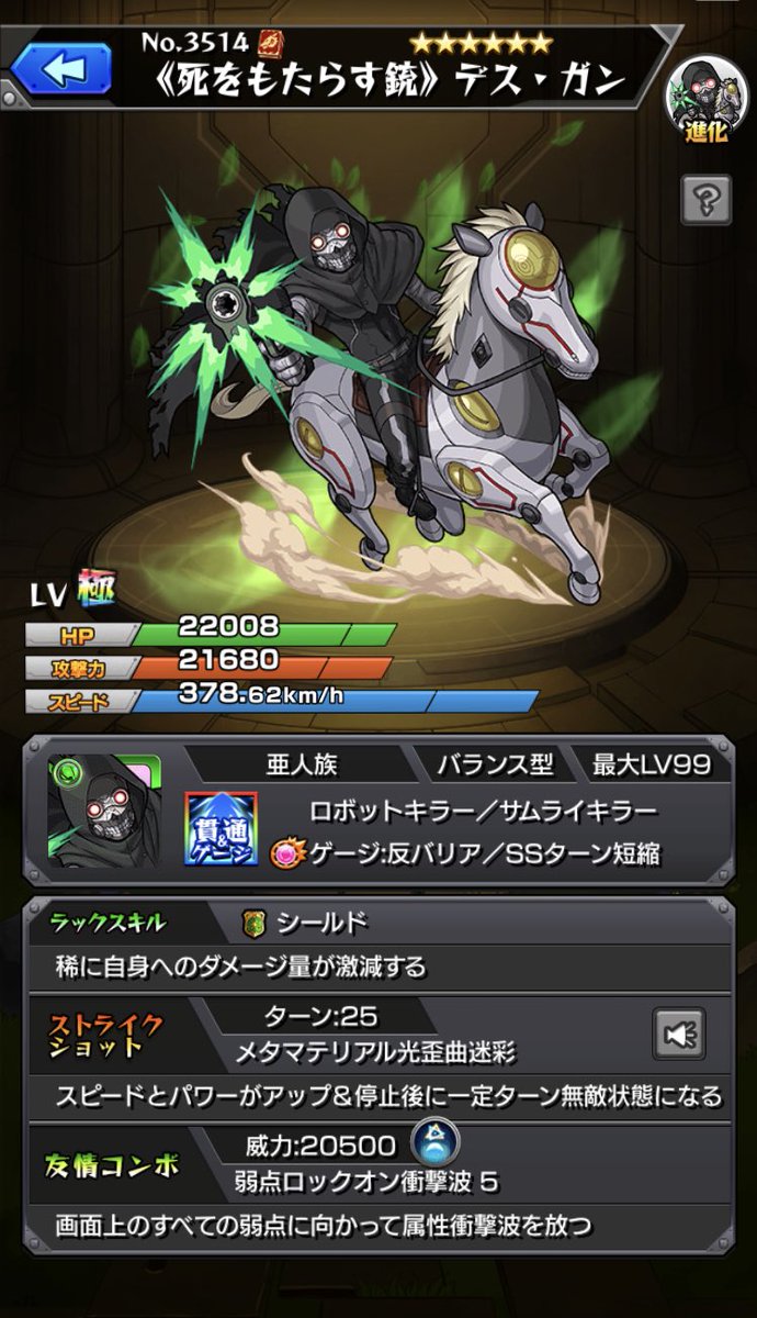 今回のコラボ降臨の性能見た感じだとデスガンが1番かな