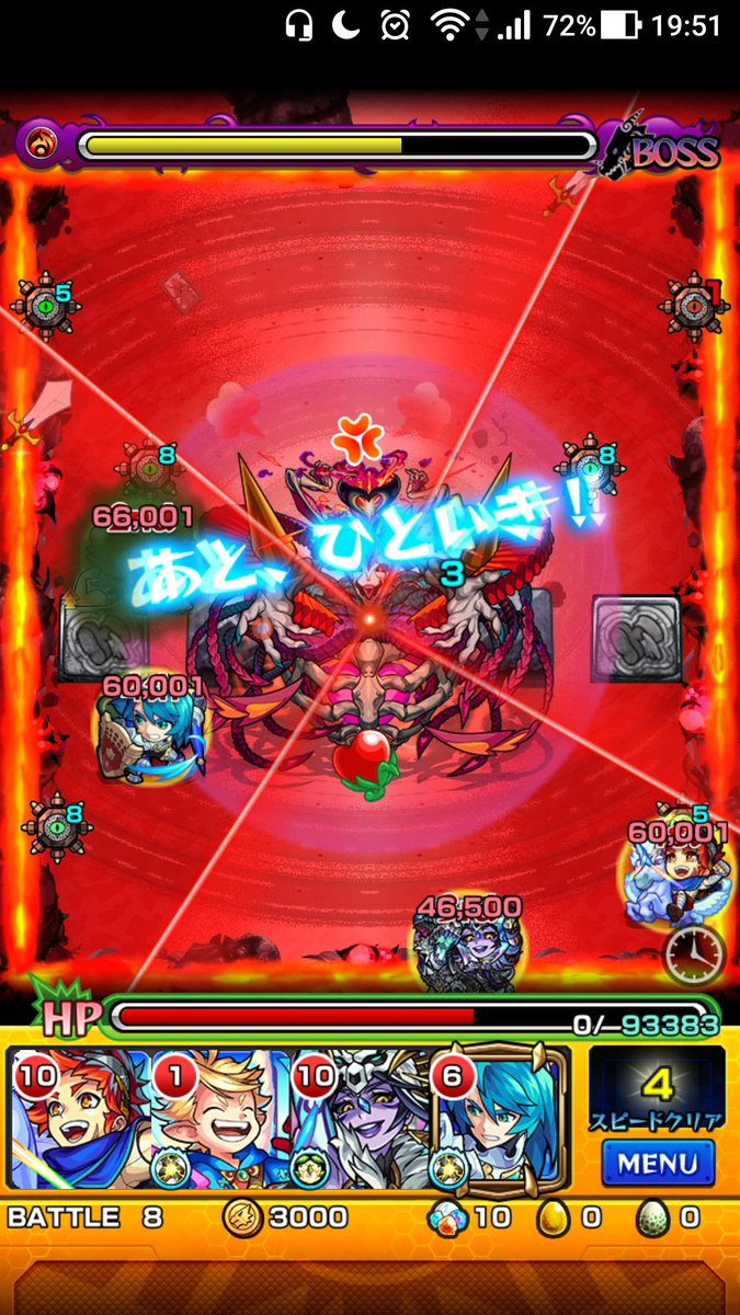 戦型、撃種、同族加撃速の無印特級付でハトホルは弱点通れば一発で倒せる?ぽいです。クリア時のPTしか撮れてないけど、まだの方いたら参考程度に。 pic.twitter.com/2GkQgfL593