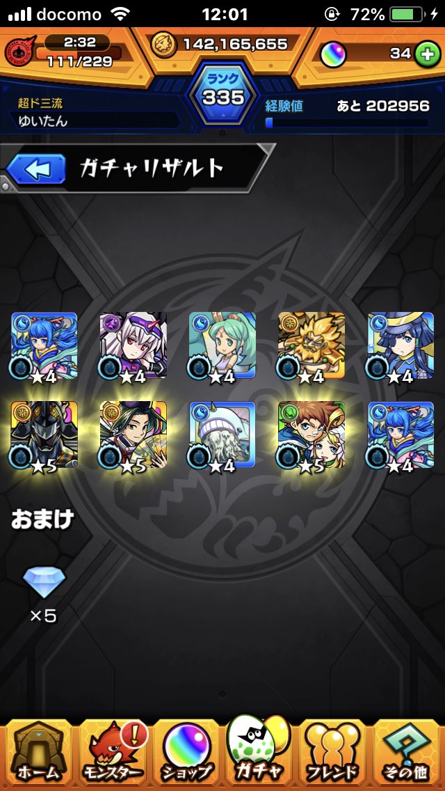 ルシ1 卑弥呼2 ガブ2 神威1 パンドラ3 モーセ1
