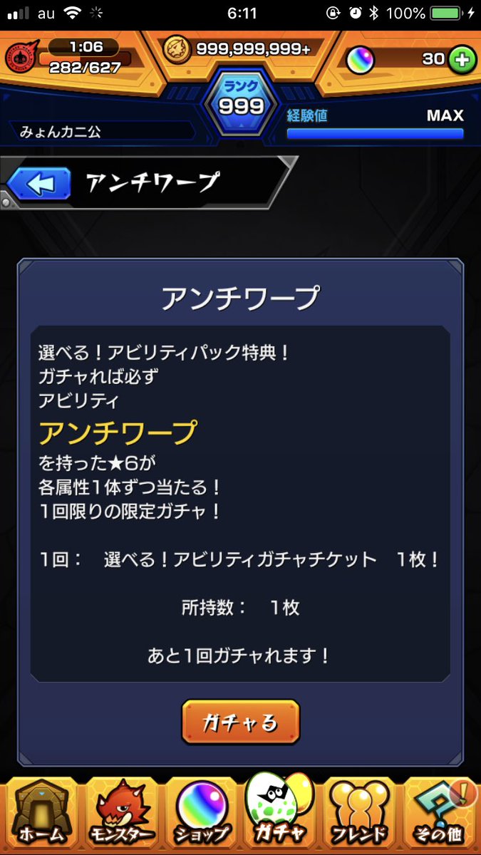 3800円の星6確定アビリティガチャ、アンチワープにした結果、未所持キャラ1体出た!いぇす! pic.twitter.com/V7xRa5gCW5