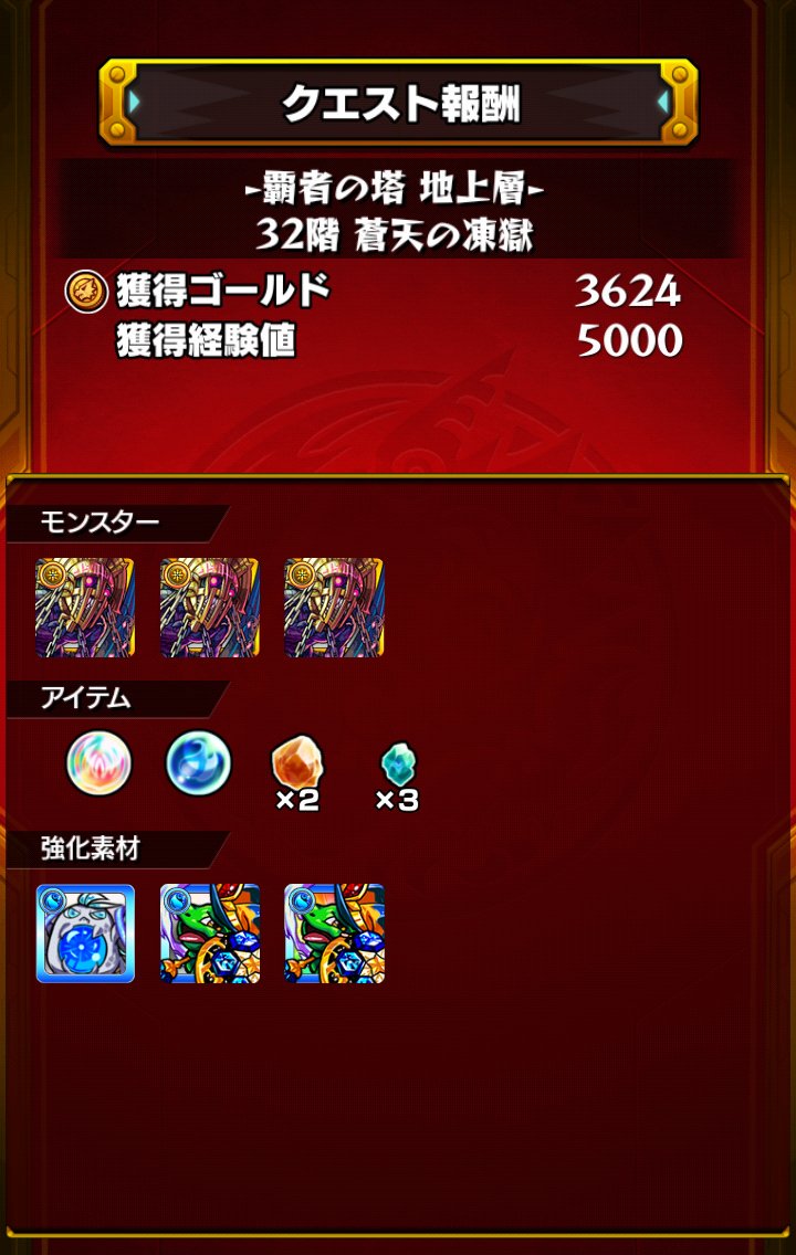 びっきーさん(@user_T_H7 )にクーフーリン2体貸してもらって32階クリア出来ました!( *˙ω˙*)و