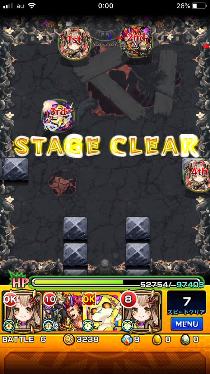 初めて四の獄勝ったぜ!紫陽花はアビロ喰らわなければ使えた!ボス面の雑魚処理はほぼサタン頼みでしたw pic.twitter.com/o2g6e0RcvG