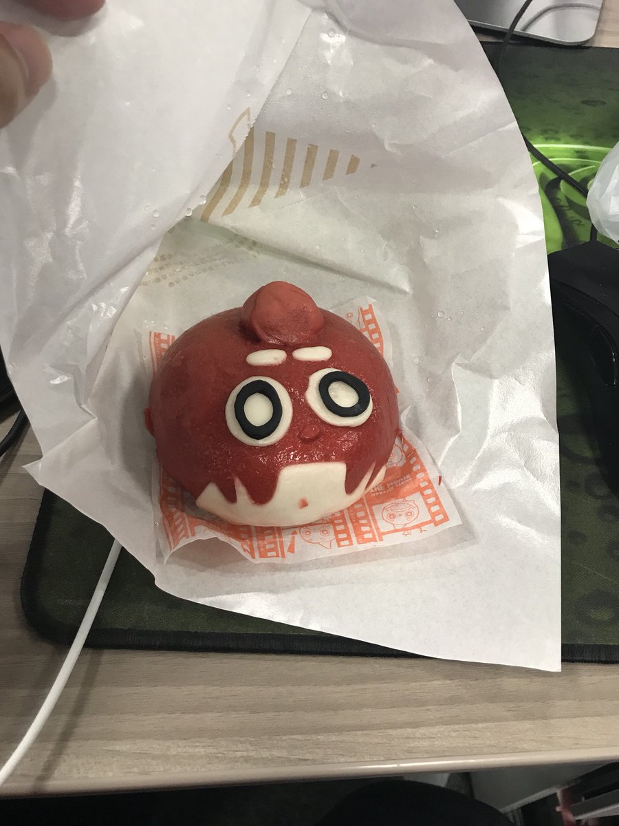 じいさんに茶色いクマの中華まん(リラックマまん)買ってきてって言ったら赤い恐竜(オラゴンまん)が来たので辛いの食べられないから母上にあげた。角は辛くないから私が食べた pic.twitter.com/WkCgCVTapS