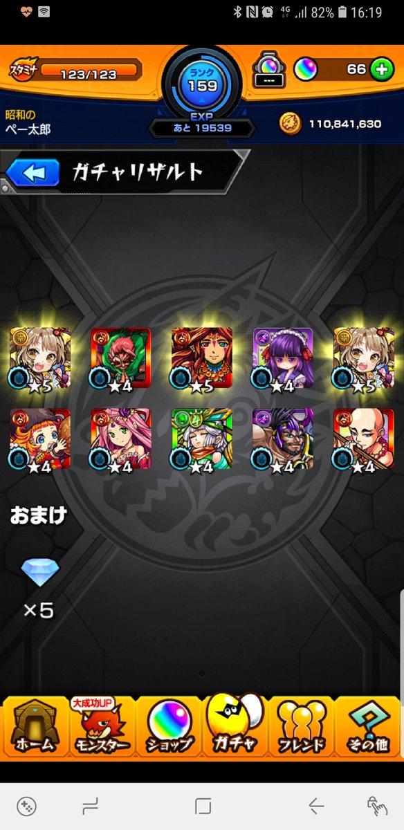 7回回して確定演出からのナイチンは残念だけど4体星5でたから満足