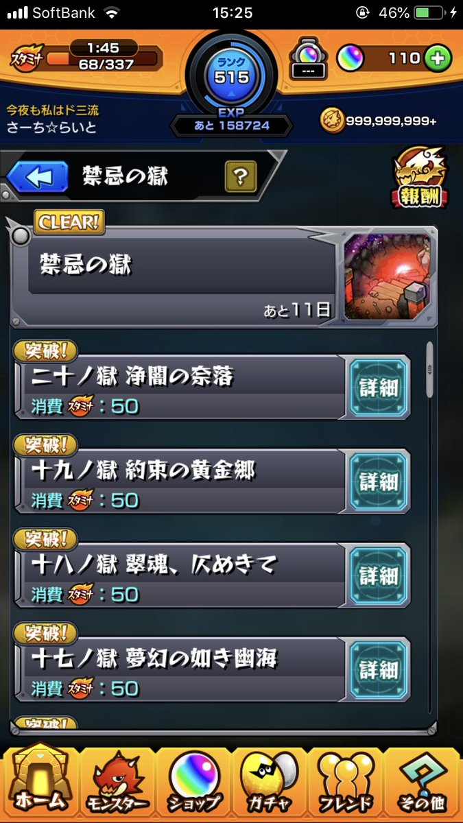禁忌20ノ獄制覇しました(๑´˘`)ノ