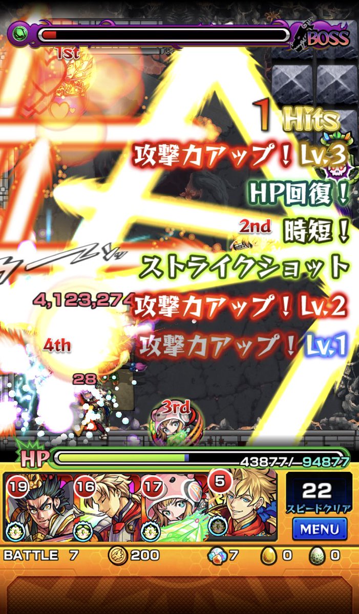 獣神化したラザニーで話題の禁忌8は1発でクリア、ボス2でダメージ調整していつもの壁ドンワンパンしようとしたら弱点狙って当たったら倒しちゃってボス3危なかった pic.twitter.com/tVUpwbYajU