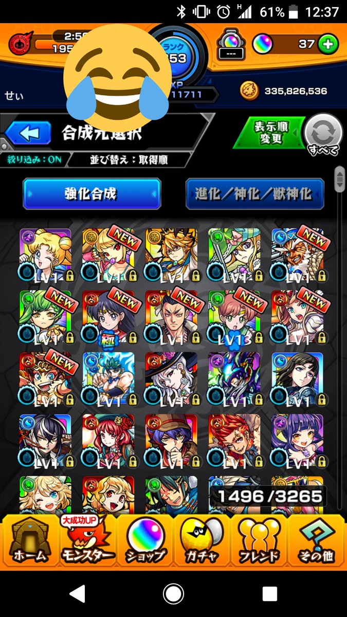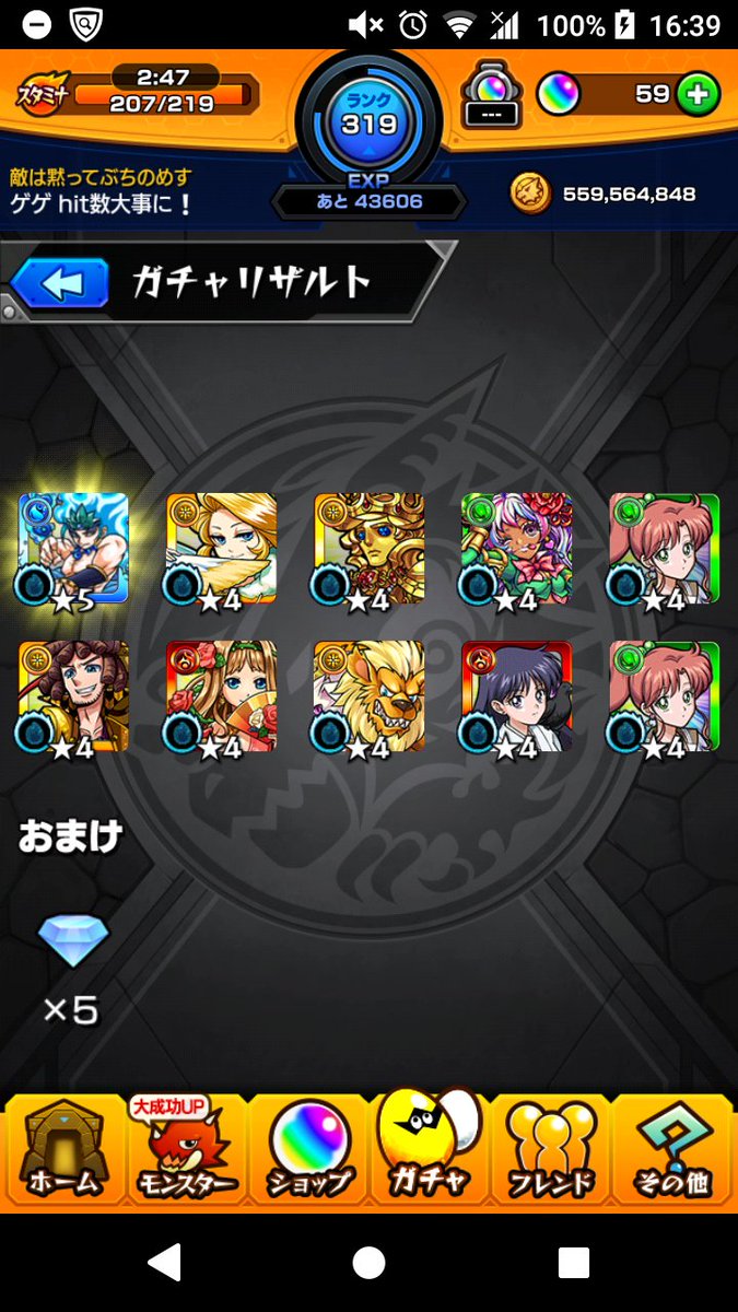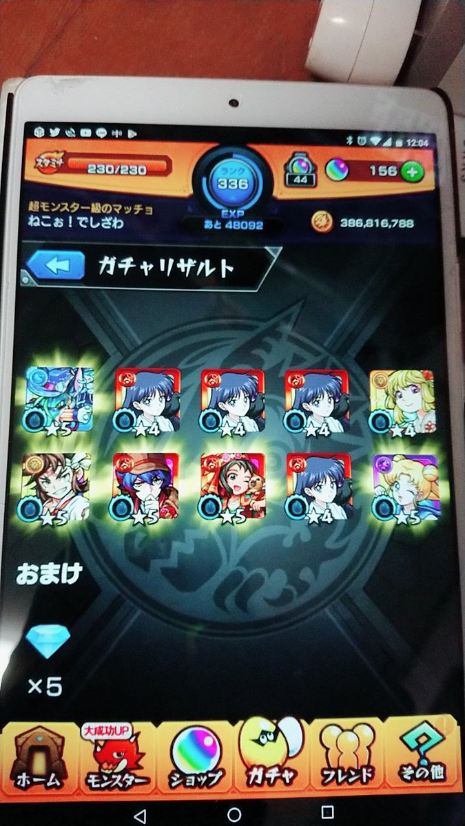 ガチャ禁するはずだったがとりあえず星4、5狙い兼当たり狙いで最初で最後のセーラームーンガチャ。6人目のセーラームーンを初ゲット出来てかなり嬉しいです。自分の中ではセーラームーンポポを初ゲットで収穫。もうガチャは勇気ある撤退で。