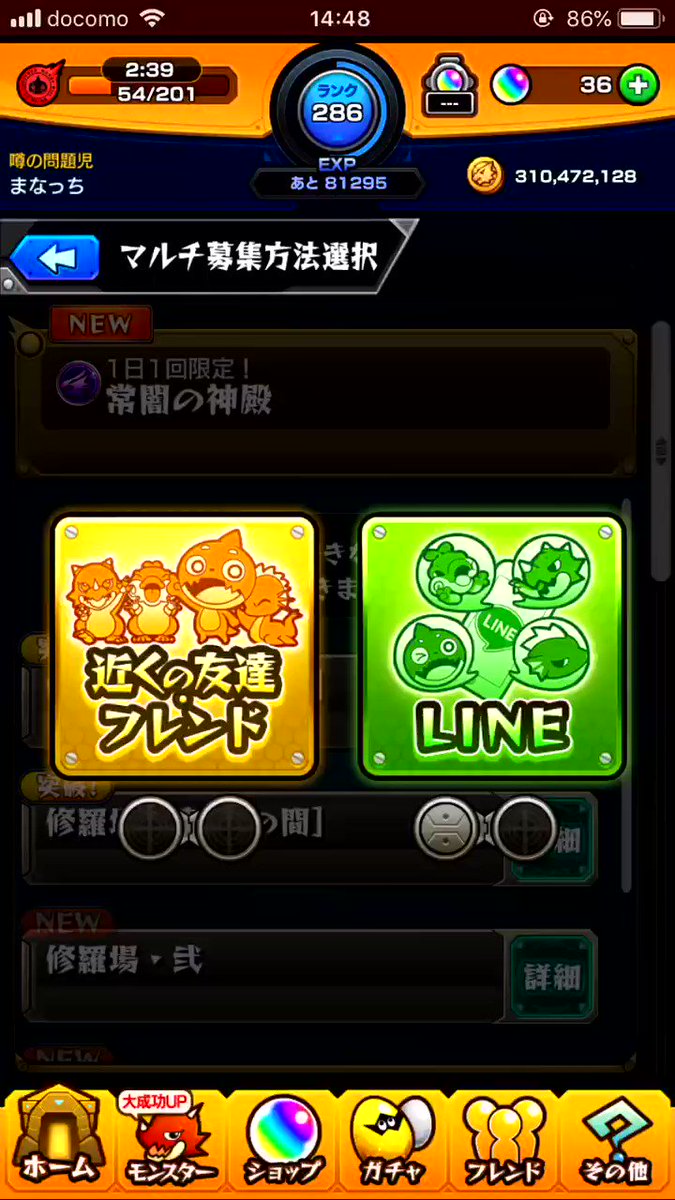 矢印押してモンストのホーム画面戻してまた募集選びなおしたらなおらんか?