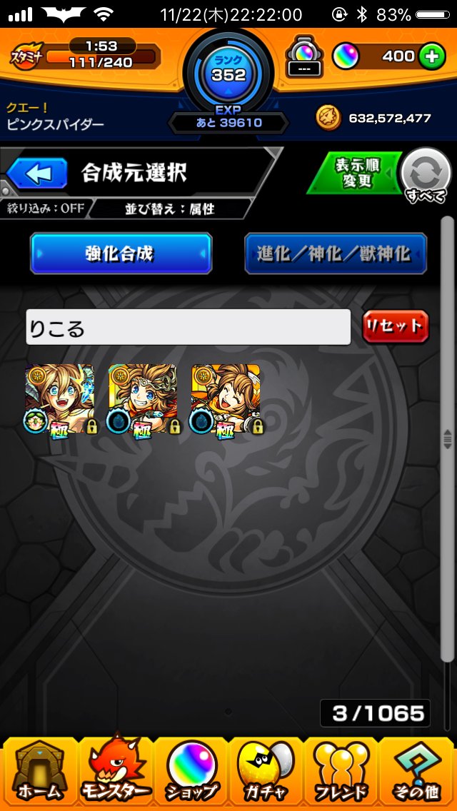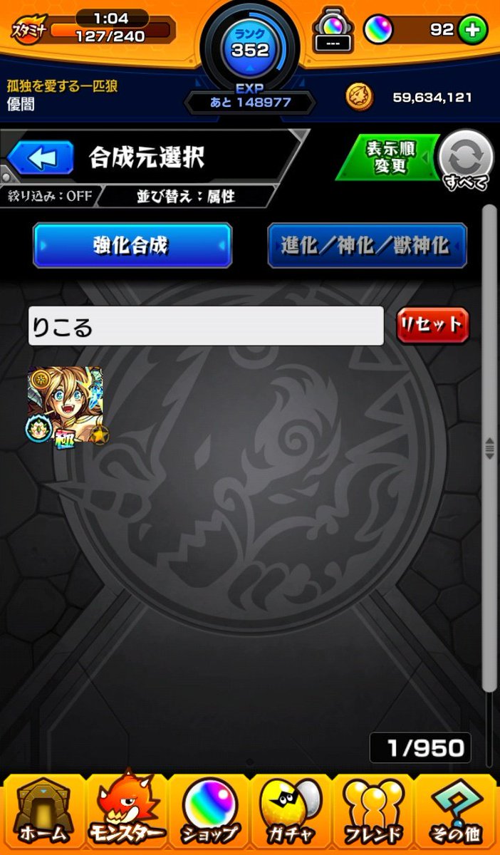 今後獣神化の強友情はサブにつけてコピーされないようにします