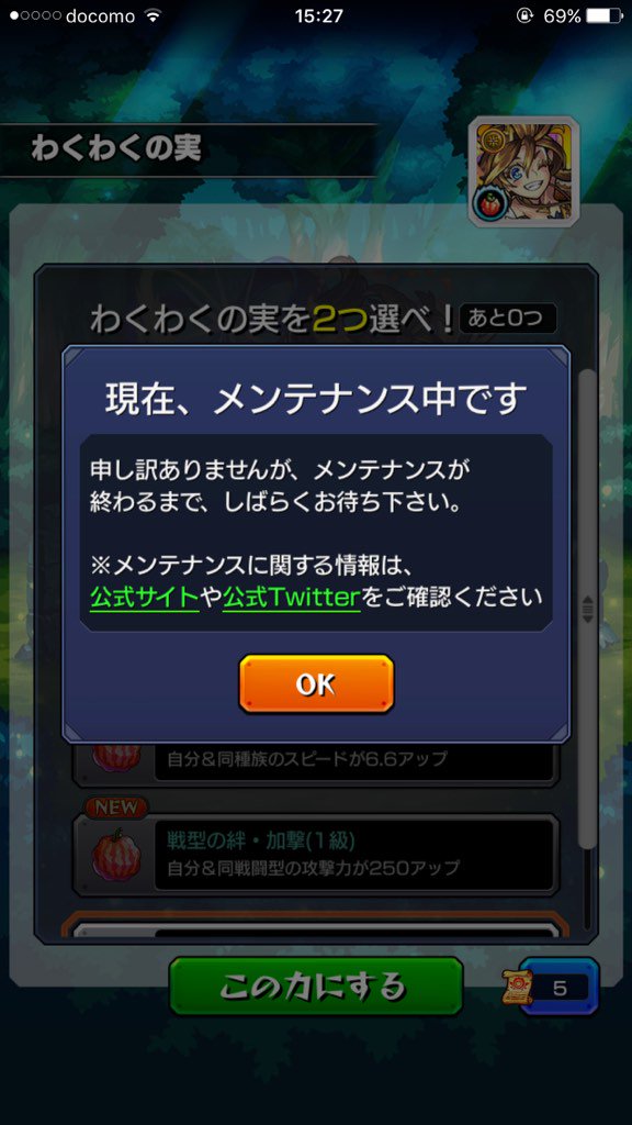 出張移動中にモンストやり始めたら緊急メンテかよクソが