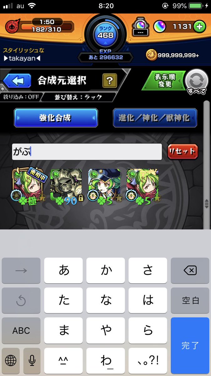 4. 進化後🍀99と進化前🍀1が返ってくる