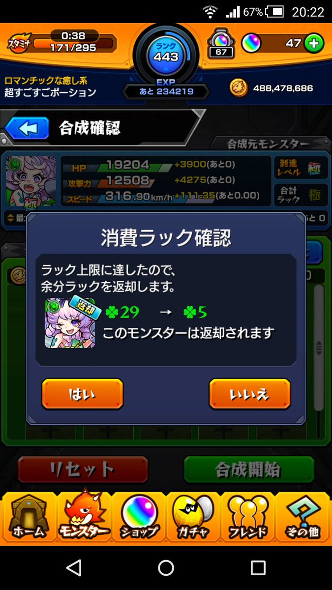 モンストのアップデート運極合成時余ったラック返してくれるのはガチャ限運極なったとき助かりそう主にルシファーとか