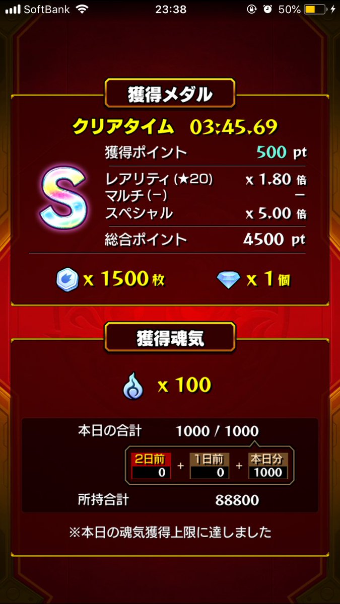 気合い入れてSランスコアLマーズ用意したけど石50個もためられかなかったわ