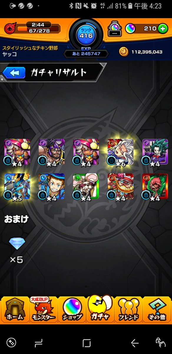 まずモン玉シュリ、前から欲しかったから超嬉しい!!からのクリスマス103連(ホシ玉2回)ラミとジュリ狙いなのに見事にかわしていくぅ~…。謎のベートーベン2枚抜きw初カマエルだしさりげなく初アンバーだし100連でこの結果は満足!!追うか悩んだけどラミエルはサブから借りよう……
