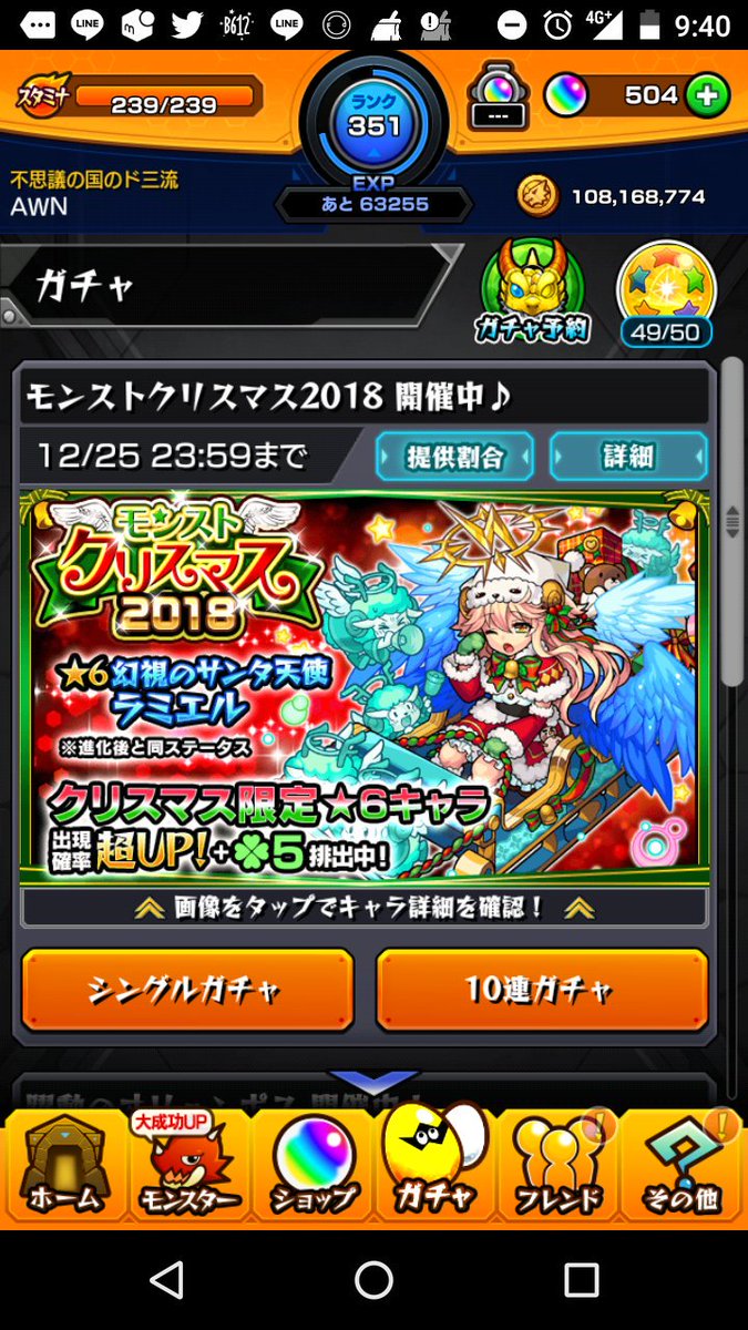 64連で☆5 12体だからひけてるとは思うのですが、クリスマス限定はやはり強敵かと😥