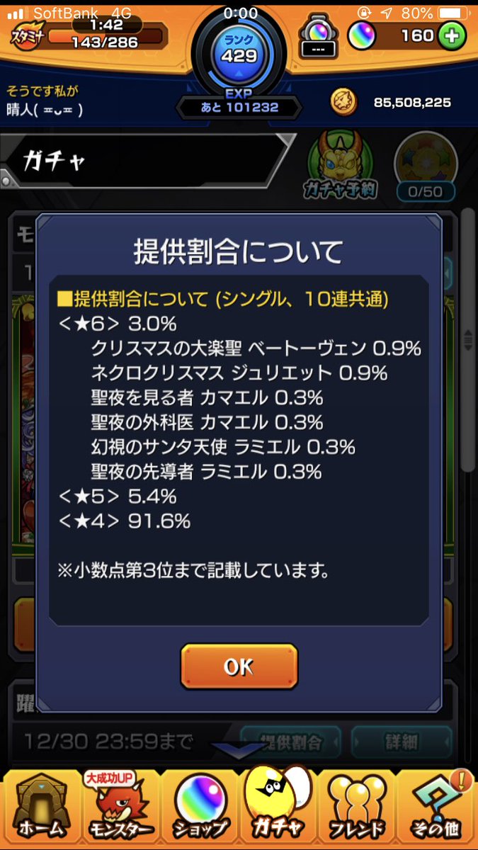 クリスマスガチャ30連大爆死!!!!死ね!!!!!!!!!!虚偽の提供割合表記してんじゃねえよ何が8.4%だ?星4が100%って表記しとけカス!