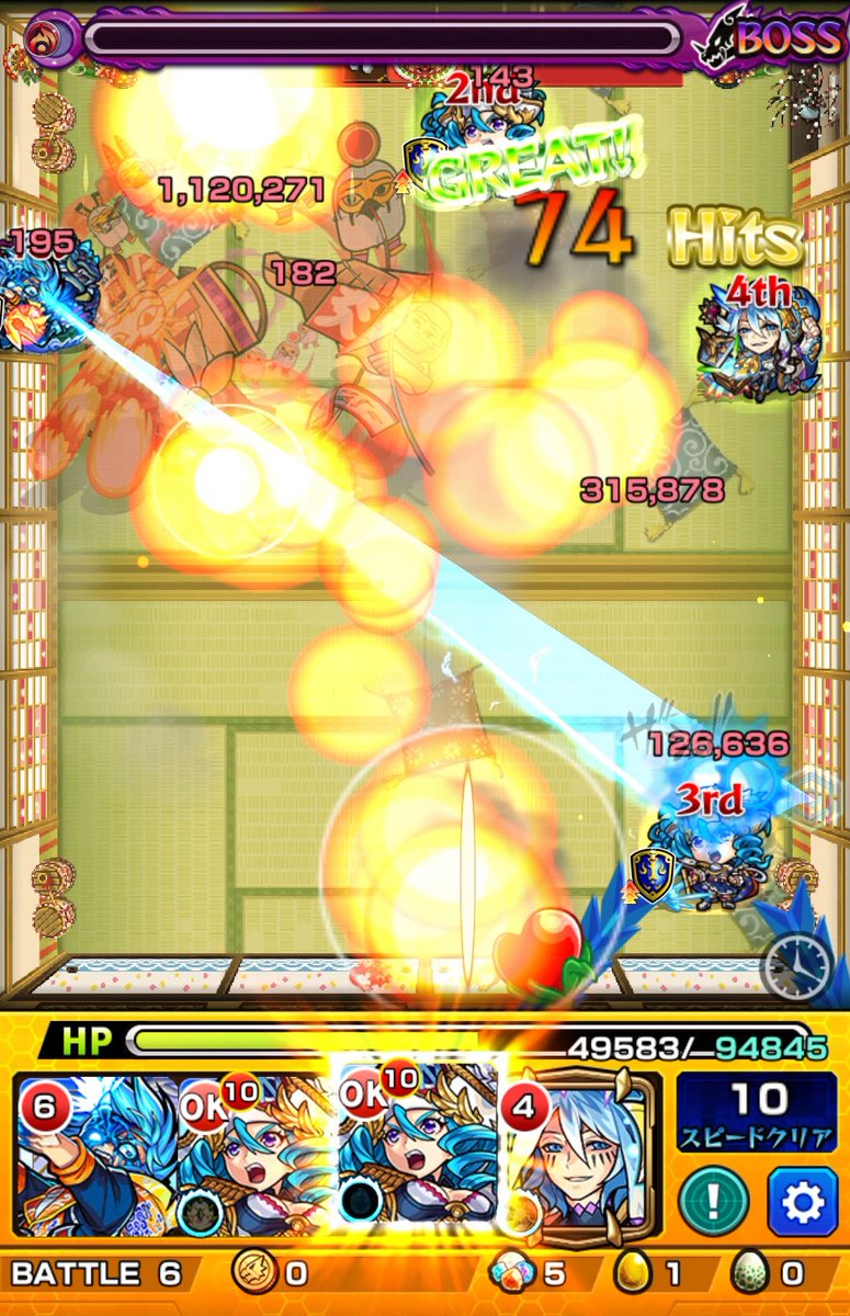 ルシ、マナ、モツ、刹那、モーセ3とか色々試したけどナポレオン1入れたらかなりらくかな!グダッてこのタイムやしメダルだけで運極出来るwとりあえず今日はそれが分かったから大満足です